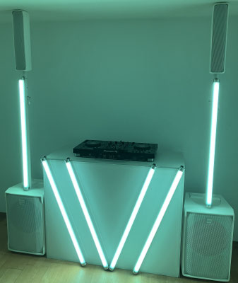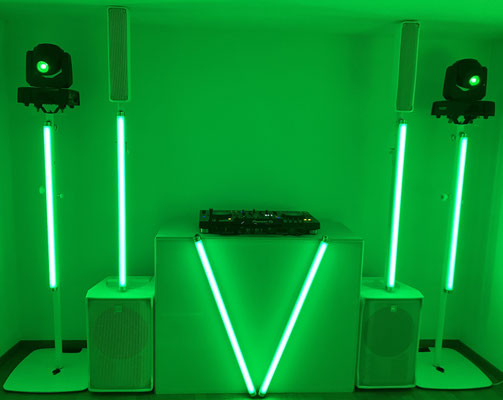 Akkubetriebene Lichtanlage mit ausreichender Akkulaufzeit, ohne Kabel die stören und eine Stolpergefahr darstellen.